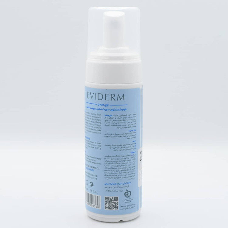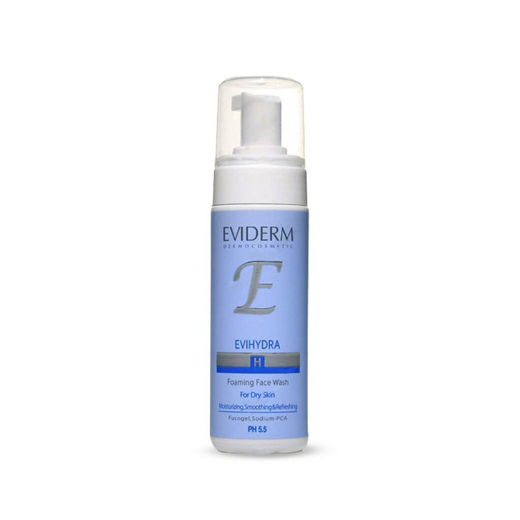 فوم شستشو صورت اویدرم مدل Evihydra حاوی سورفکتانت های ملایم جهت شستشوی روزانه پوست صورت و دور چشم از مواد آرایشی و آلودگی ها فرآوری شده است. فوم شستشوی اویدرم پوست خشک با رطوبت رسانی مناسب پوست، از خشک شدن پوست بعد از شستشو جلوگیری می کند. فوم اویدرم پوست خشک با داشتن ماده موثره فوکوژل و عصاره های گیاهی (آلوئه ورا، گل بنفشه و عصاره استخراجی از چند میوه بری) در تسکین علائم التهاب پوست حساس و آسیب دیده موثر بوده و از تحریک و خارش پوست جلوگیری می نماید. فوم شستشوی اوی هیدرا همچنین با داشتن (5.5) pH، موجب حفظ تعادل pH پوست خشک و حساس شده و حس تازگی و لطافت را برای پوست به ارمغان می آورد. استفاده از این شوینده به دلیل ساختار فومی، راحت بوده و از تحریک پوست جلوگیری می کند.
